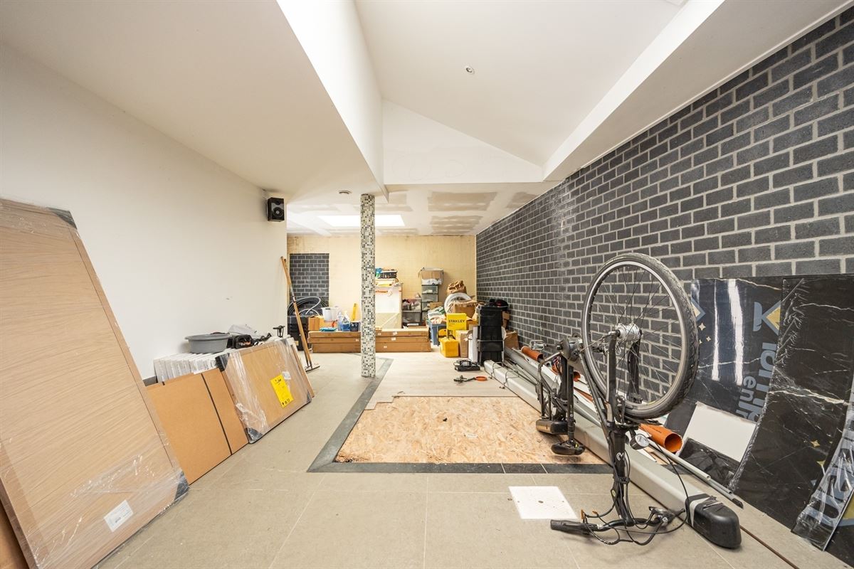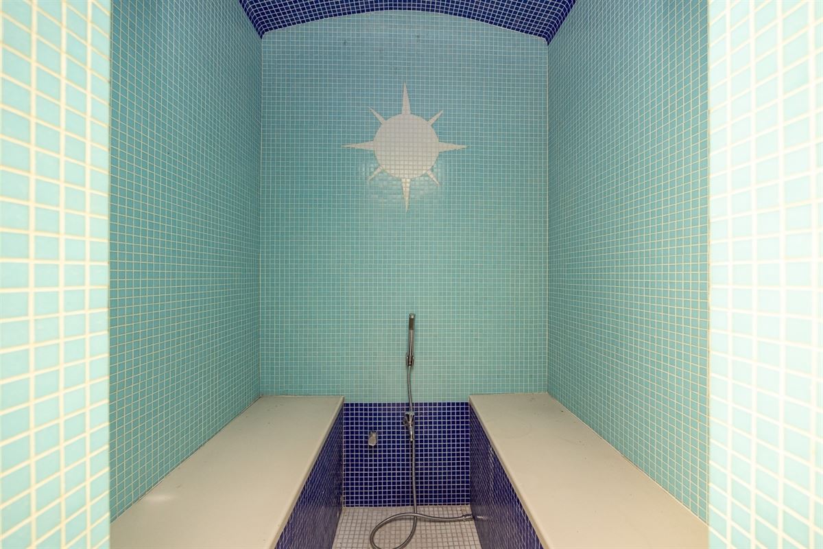 Aansluitend bevindt zich een op te frissen polyvalente (praktijk)ruimte met aparte zijdelingse ingang, voorzien van een stoombad, binnenzwembad (momenteel dichtgemaakt) en douchevoorzieningen perfect in te richten als wellness, bureel of hobbyruimte.